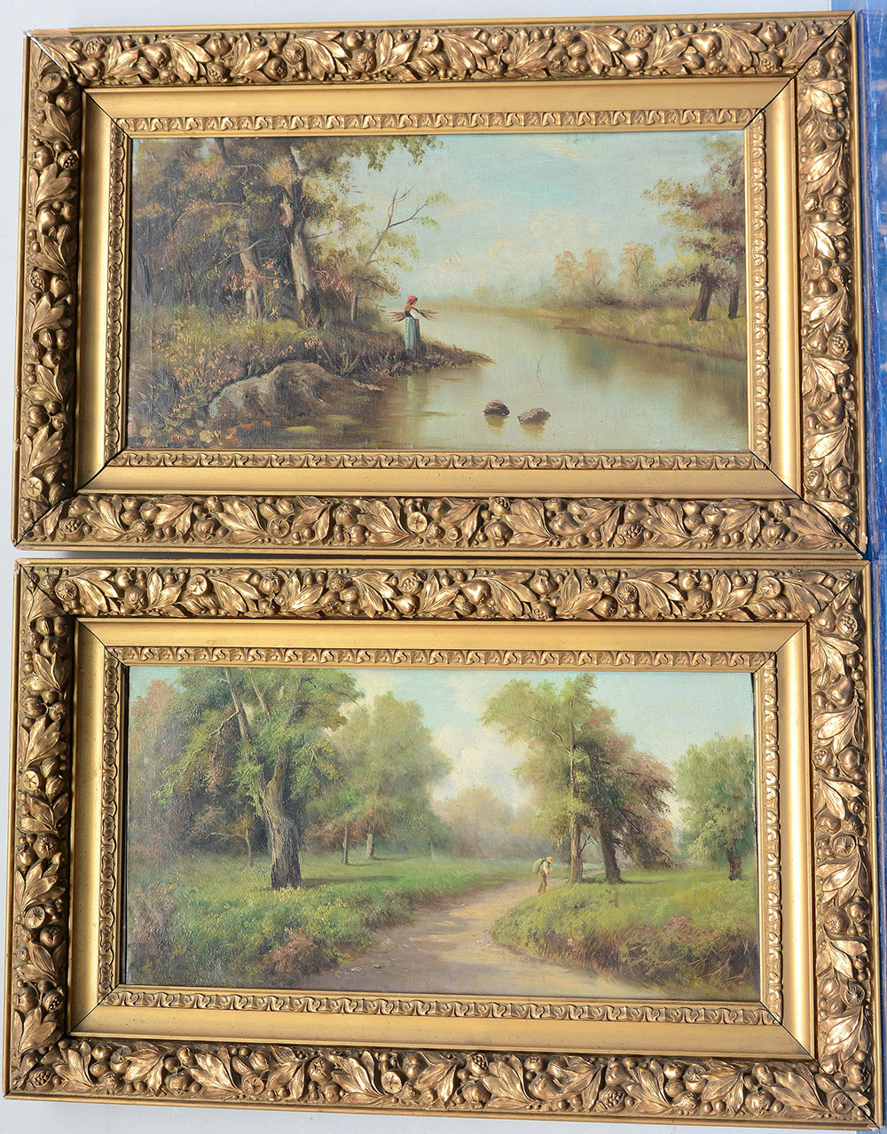 De Simone "Paesaggi con figure" coppia di olii su tela (cm 33x63) firmati in basso a sinistra, in cornici (difetti)