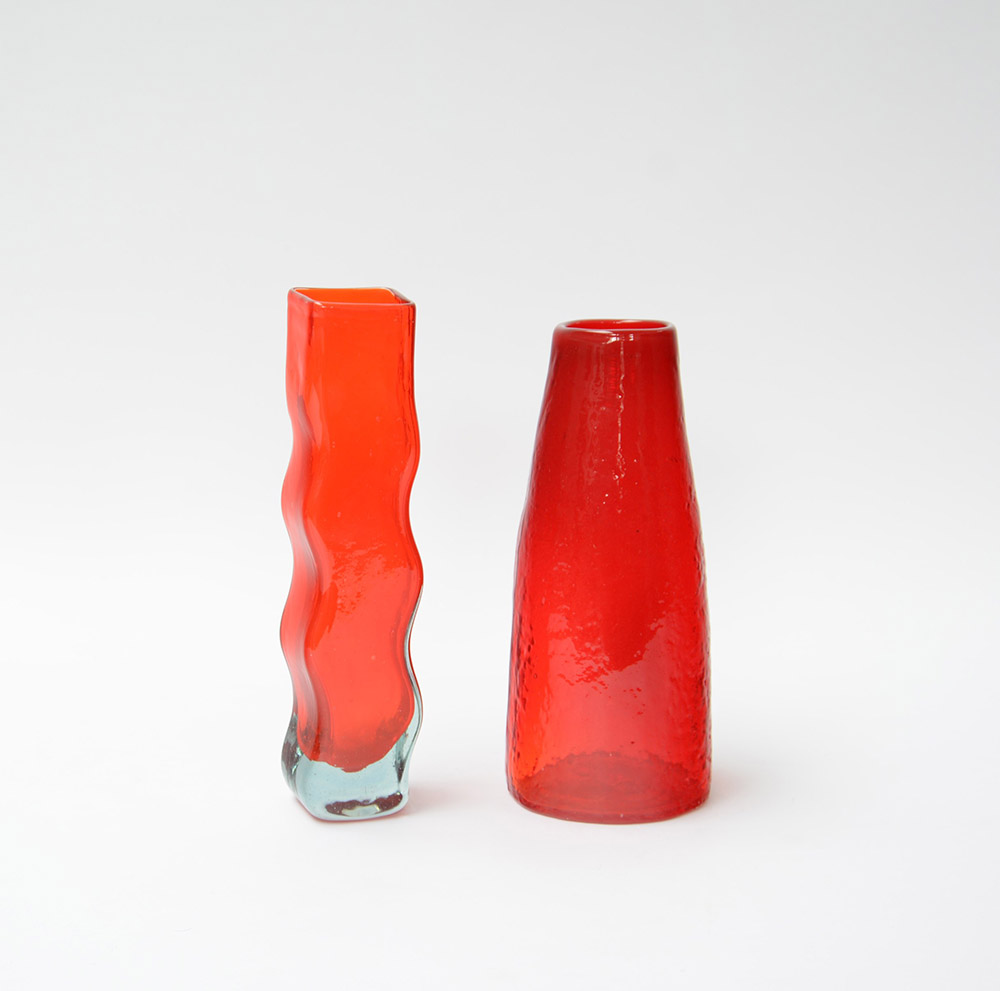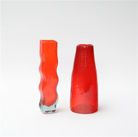 Lotto di due vasi diversi in vetro rosso, secolo XX