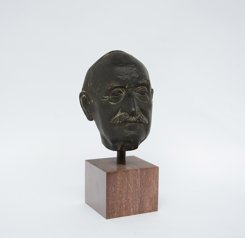 Giuseppe Scalvini Milano 1908 2003 "Mio Padre" '52 scultura in bronzo (h cm 26) poggiante su base in marmo (h totale cm 43) Firmata e datata sul retro