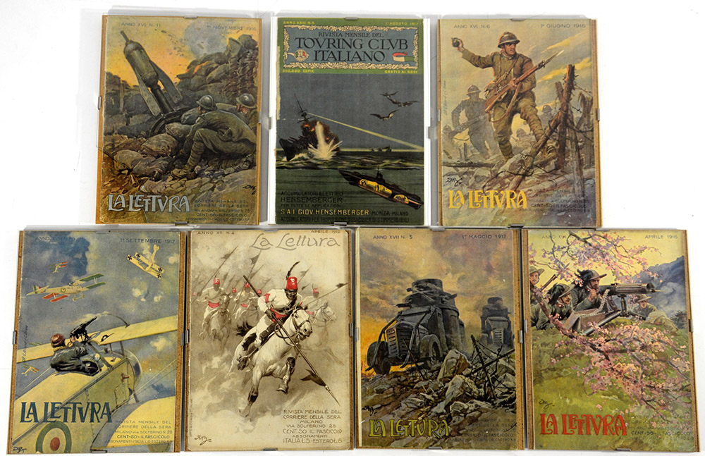 Lotto composto da sei copertine sotto vetro della rivista "La Lettura", mensile del Corriere della Sera, inerenti fatti bellici, una del 1912, tre del 1916, due del 1917; a queste si aggiunge una copertina della rivista del Touring Club del 1917