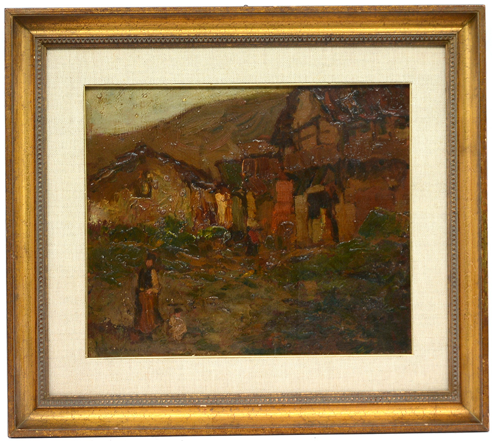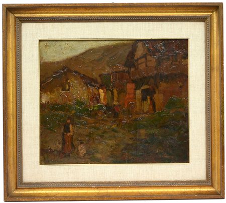 Cavallini "Paesaggio con figure" olio su cartone (cm 29x35) firmato in basso a sinistra. In cornice