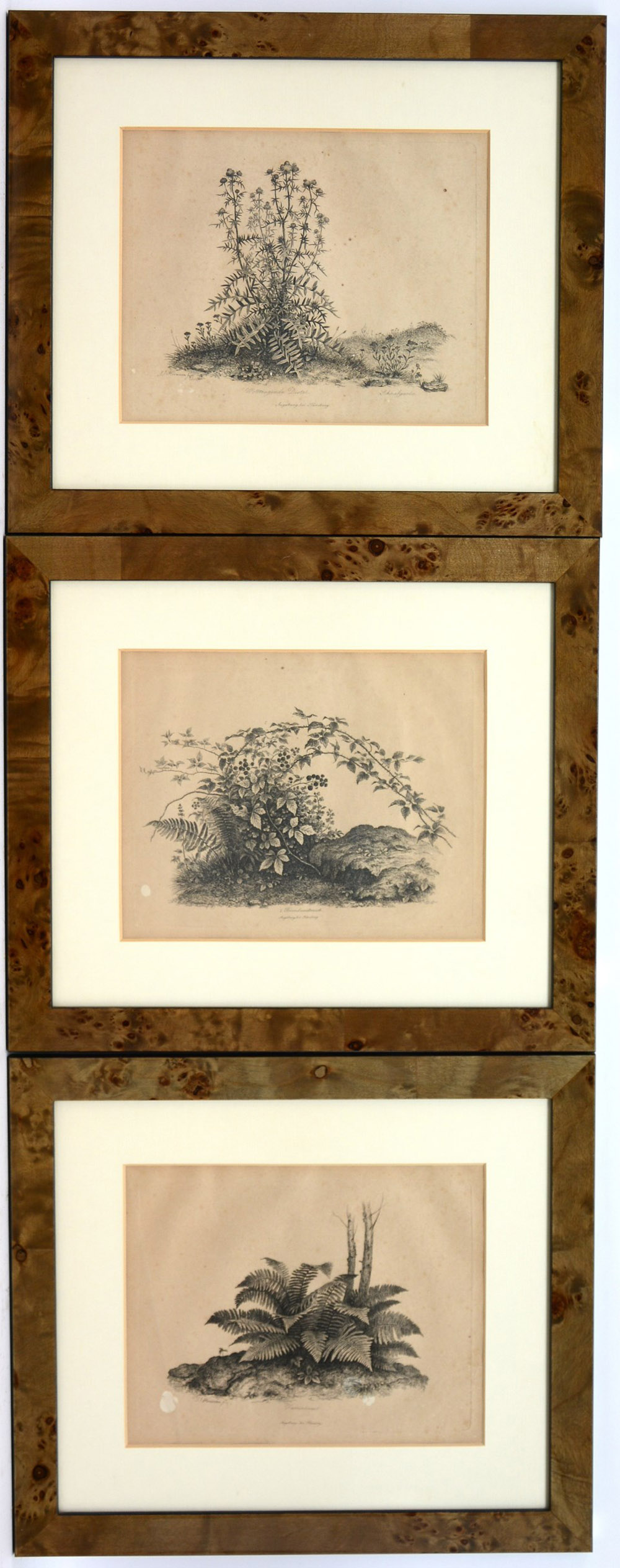 Gruppo di tre stampe a soggetto botanico. In cornici