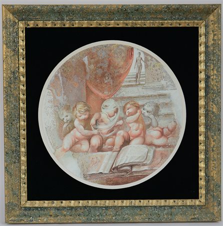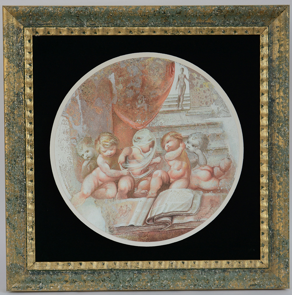 Marchionni Elvio Spello 1944 "Aforismo", multiplo a tecnica mista su tavola (d cm 42) esemplare n. 14/60, in cornice