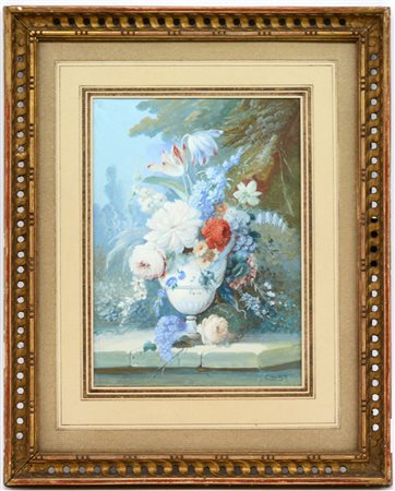 Callard, sec. XIX "Vaso fiorito" acquarello e tempera su carta (cm 20x14)...