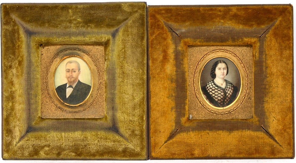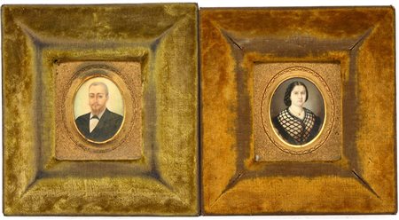 Lotto composto da due miniature ovali raffiguranti gentiluomo e gentildonna. In cornici