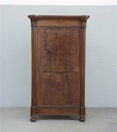 Secretaire lastronato in noce ad un cassetto e due ante di cui quella...