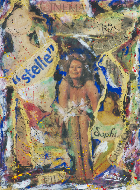 Rotere6 Roma 1953 Stelle del cinema - Sophia Loren Tecnica mista su tela, cm. 24x18 Firmato in basso a destra. Sul verso: firma ed etichetta dell'Artista.