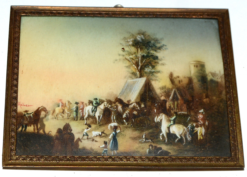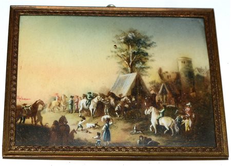 Ignoto "Accampamento" miniatura rettangolare (cm 6x8) In cornice