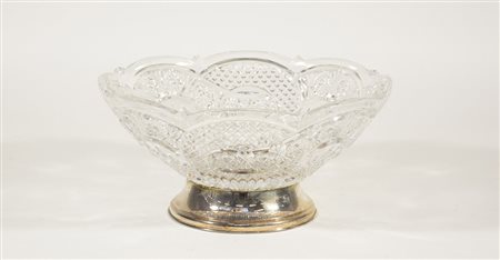 Coppa centrotavola in cristallo molato con base in metallo argentato (lievi...