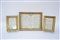 Lotto di tre cartaglorie con cornici in legno e lamina d'ottone (luci cm 13,5x20,5 e 35,5x27) (difetti)