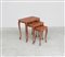 Lotto di tre tavolini a nido con gambe mosse e piani intarsiati a motivi...