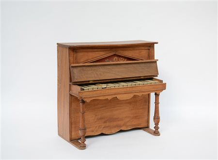 Modellino di pianoforte in legno con fronte decorato da cornici ed inserti in...