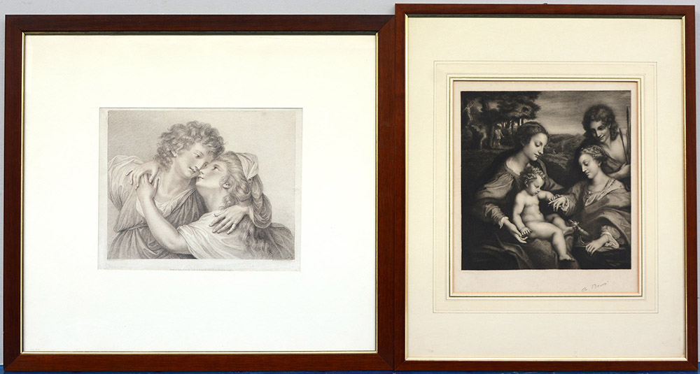 Lotto di due antiche incisioni, di soggetti, autori e dimensioni differenti, in cornici (lievi difetti)
