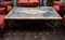Piano rettangolare in marmo rosso venato, motivo romboidale e cornice esterna in marmo giallo (cm 160x95) montato a tavolino da salotto con base in metallo e ottone (difetti)