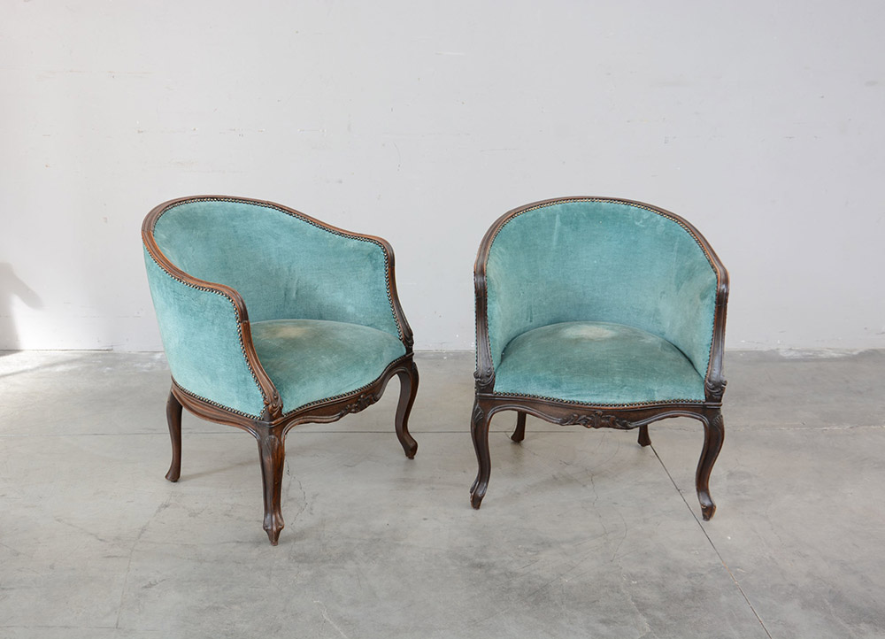 Coppia di poltrone a pozzetto in noce. Sec. XIX (difetti)