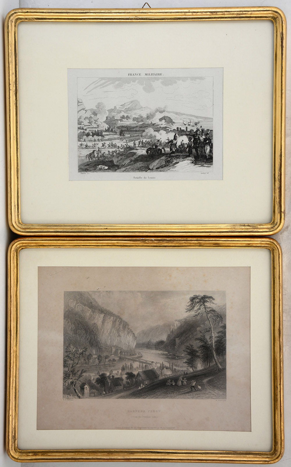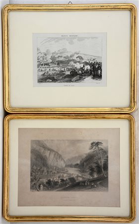 Lotto composto da una riproduzione e una litografia, raffiguranti rispettivamente un episodio della battaglia di Loano e la veduta del fiume Potomac, misure diverse. In cornice