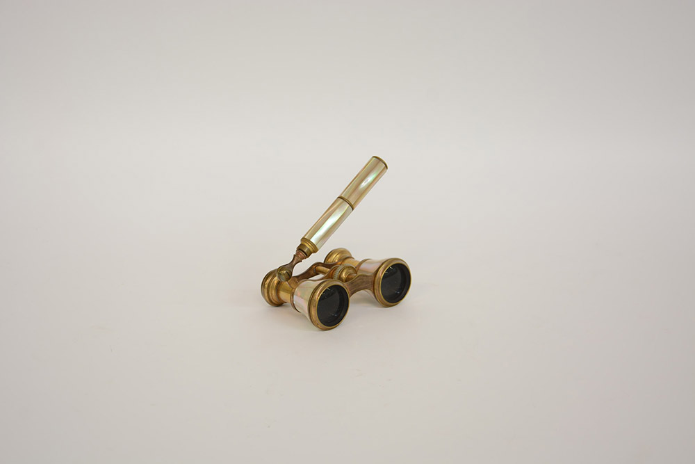 Binocolo da teatro in ottone interamente rivestito in madreperla, inizio del secolo XX