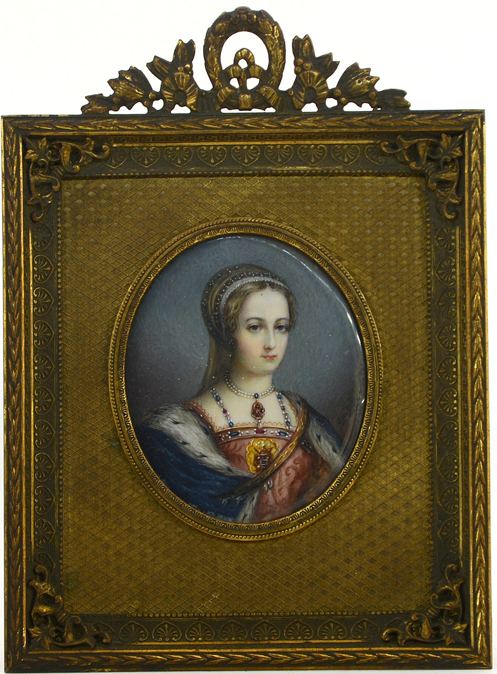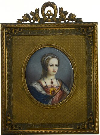 Ignoto "Ritratto di nobildonna con diadema" miniatura ovale su avorio (cm...
