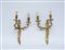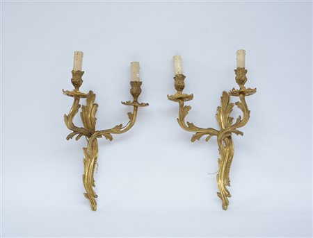 Coppia di appliques a due fiamme in bronzo dorato e cesellato (h cm 43)(difetti)
