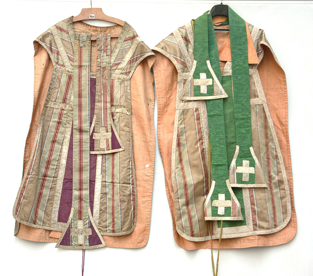 Due pianete complete di manipoli e copricalici confezionati con antichi...