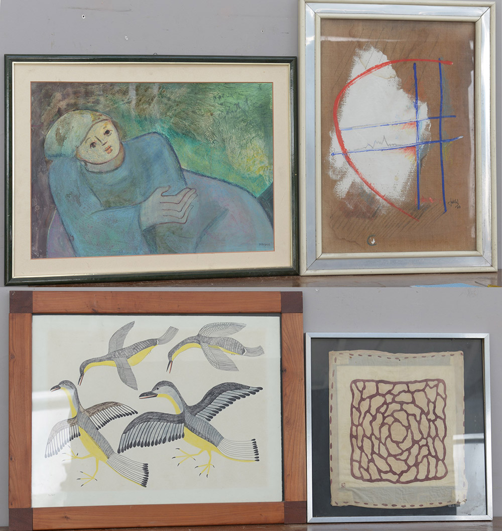 Lotto di quattro opere di autori, tecniche e dimensioni differenti, in cornici (difetti)