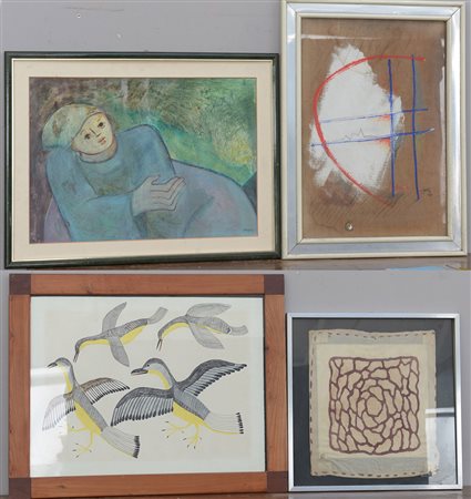 Lotto di quattro opere di autori, tecniche e dimensioni differenti, in...
