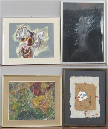 Lotto di quattro opere di autori, tecniche e dimensioni differenti, in...