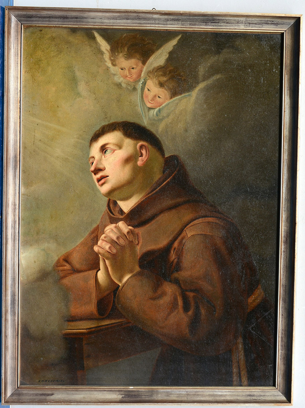 Chasseriau "Frate in meditazione" olio su masonite (cm 73x53) firmato in basso a sinistra. In cornice