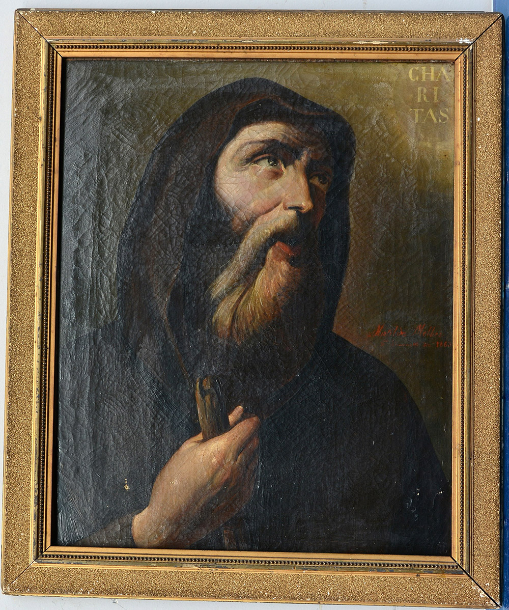 Firma indecifrata "Frate" olio su tela (cm 53x43) firmato e datato 1863 in...