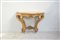 Consolle di forma sagomata in legno dorato e intagliato. Gambe mosse riunite...