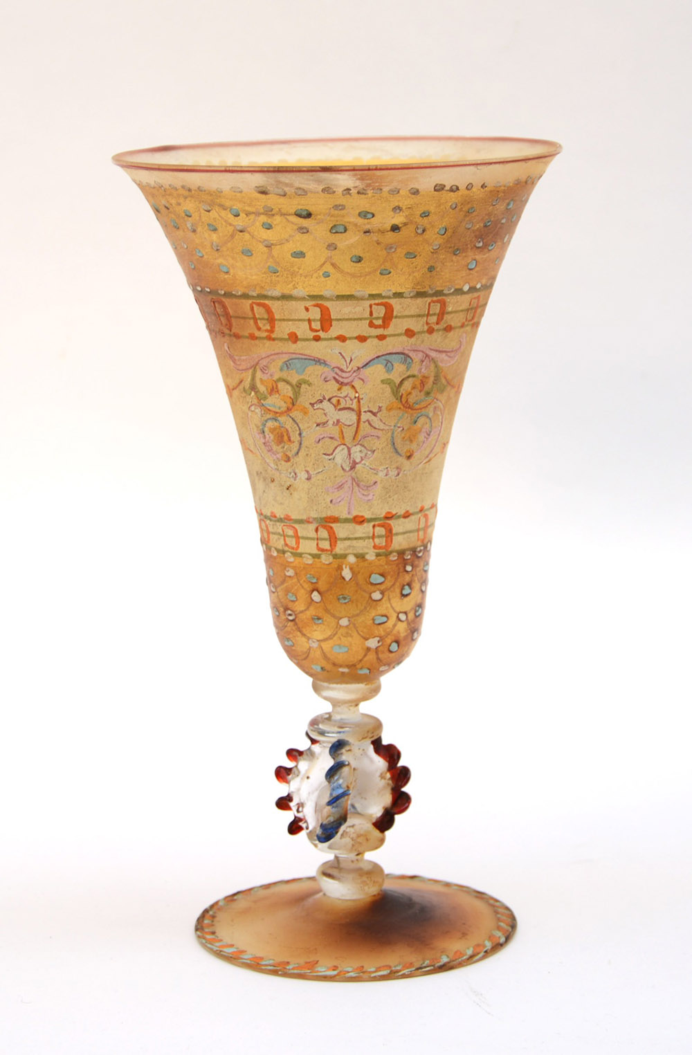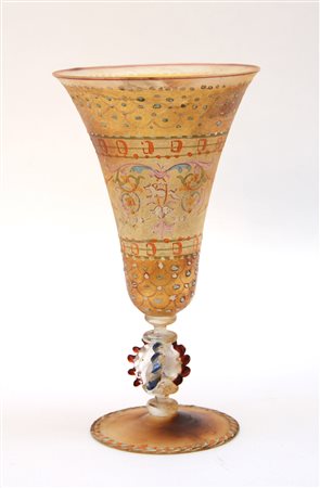 Manifattura di Murano del secolo XX grande bicchiere in vetro decorato ad "affresco" (h cm 29)