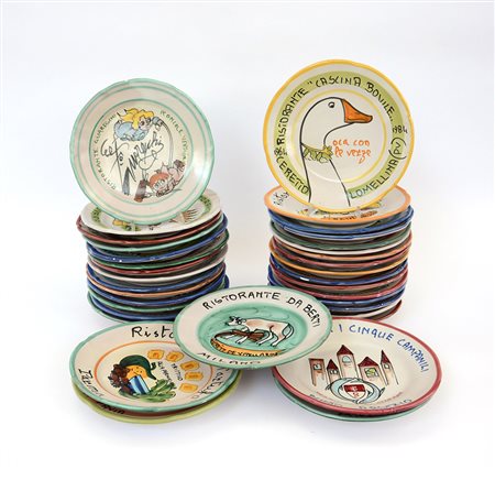 Lotto composto da trenta piatti del Buon Ricordo in ceramica smaltata in policromia sotto vetrina. Ceramiche Artistiche Solimene, Vietri sul mare, sec XX (misure diverse) (difetti)