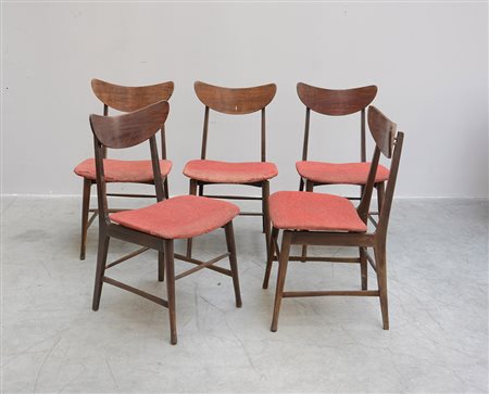 Gruppo di cinque sedie in legno. Italia, anni 60 (difetti)