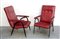 Coppia di poltrone imbottite rivestite in skai bordeaux con struttura in...