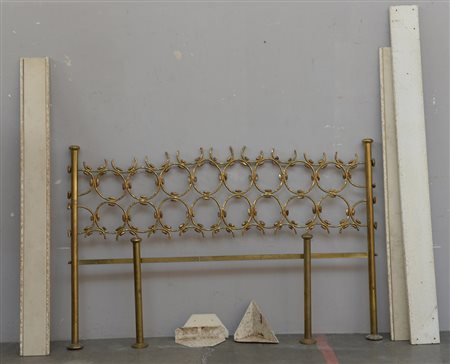 Osvaldo Borsani e Arnaldo Pomodoro Letto matrimoniale in metallo laccato e ottone con testiera in elementi scultorei in fusione. Varedo, anni 60 (difetti)