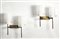 Coppia di appliques in metallo verniciato nero e ottone, diffusori cilindrici...