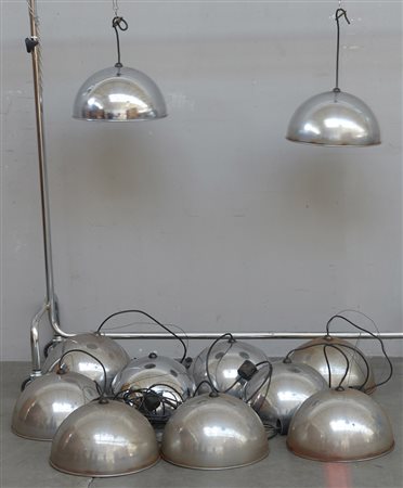 Lotto composto da undici lampade emisferiche in metallo cromato e laccato...