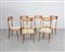 Gruppo di sei sedie in legno massello con schienale a giorno sagomato e...