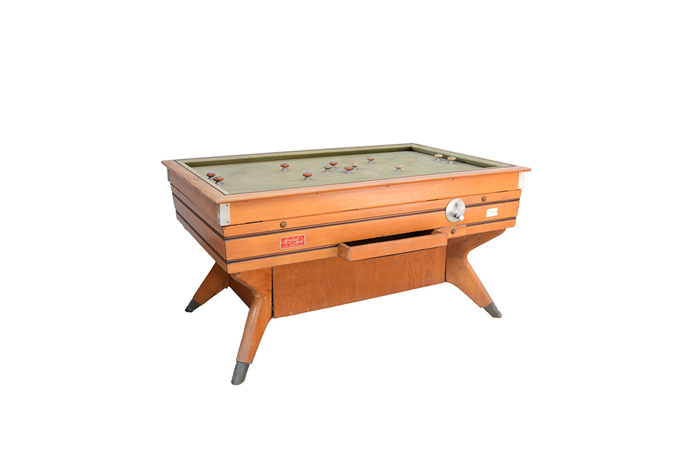 Biliardino in legno recante etichetta del produttore "Mondial Sport - Busto Arsizio". Italia, anni 50 (cm 163x83x104) (difetti)
