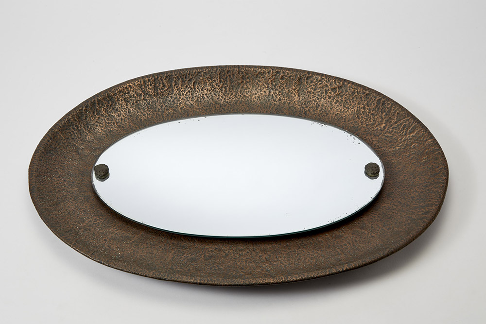 Angelo Bragalini (1913) (attribuito) Specchio ovale con cornice in lamina di rame sbalzata. Bologna, fine anni 60 (cm 49x71) (lievi difetti)