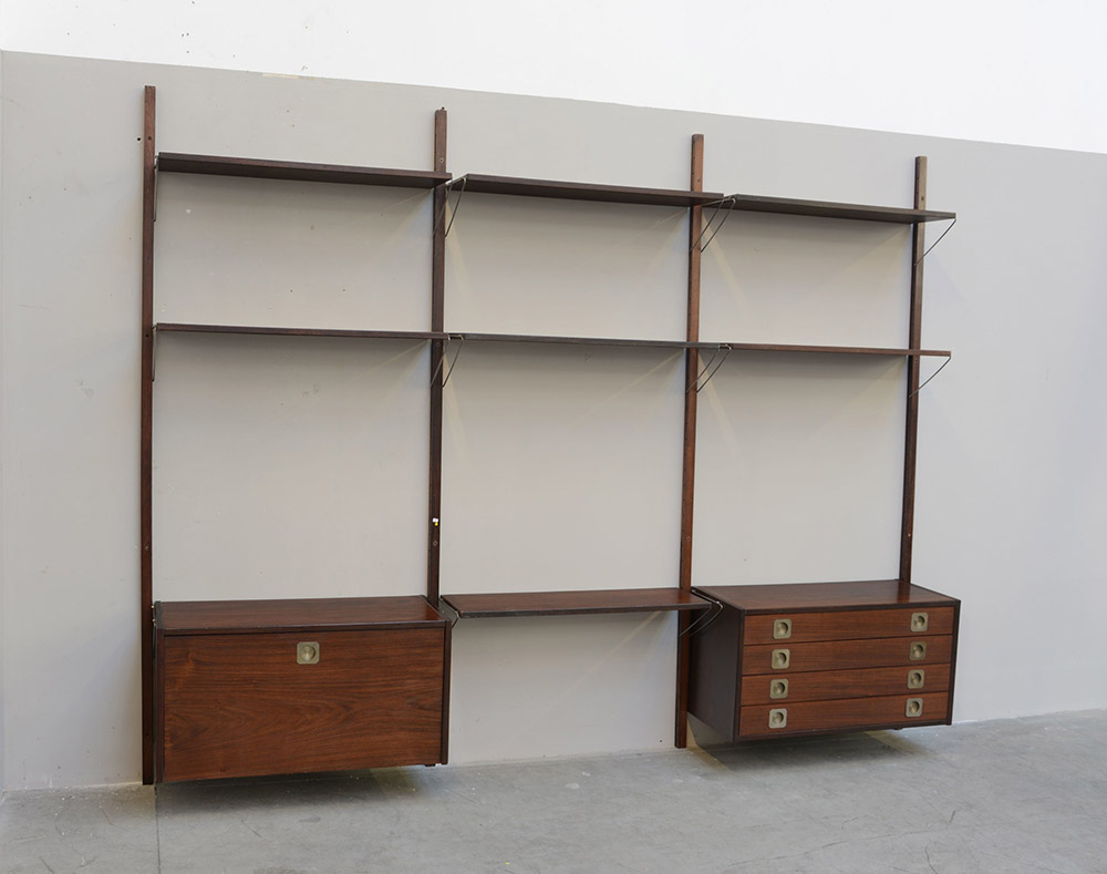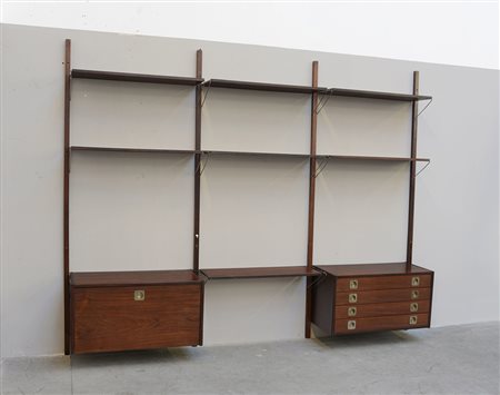 Stildomus Libreria in palissandro indiano massello e impiallaciato. Roma, fine anni 60 (cm 256,5x200x35) (difetti)