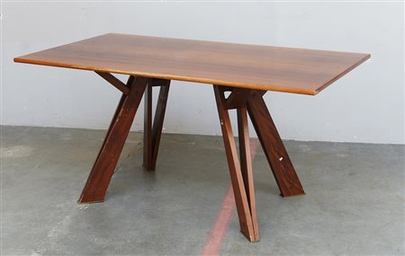 Tavolo in legno massello e impiallacciato con piano rettangolare e struttura...