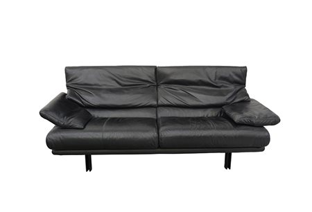 Paolo Piva 1950 Divano modello "Alanda". Produzione BBB Italia, 1980 ca. Acciaio verniciato nero, pelle nera (cm 210x90x80) (lievi difetti)