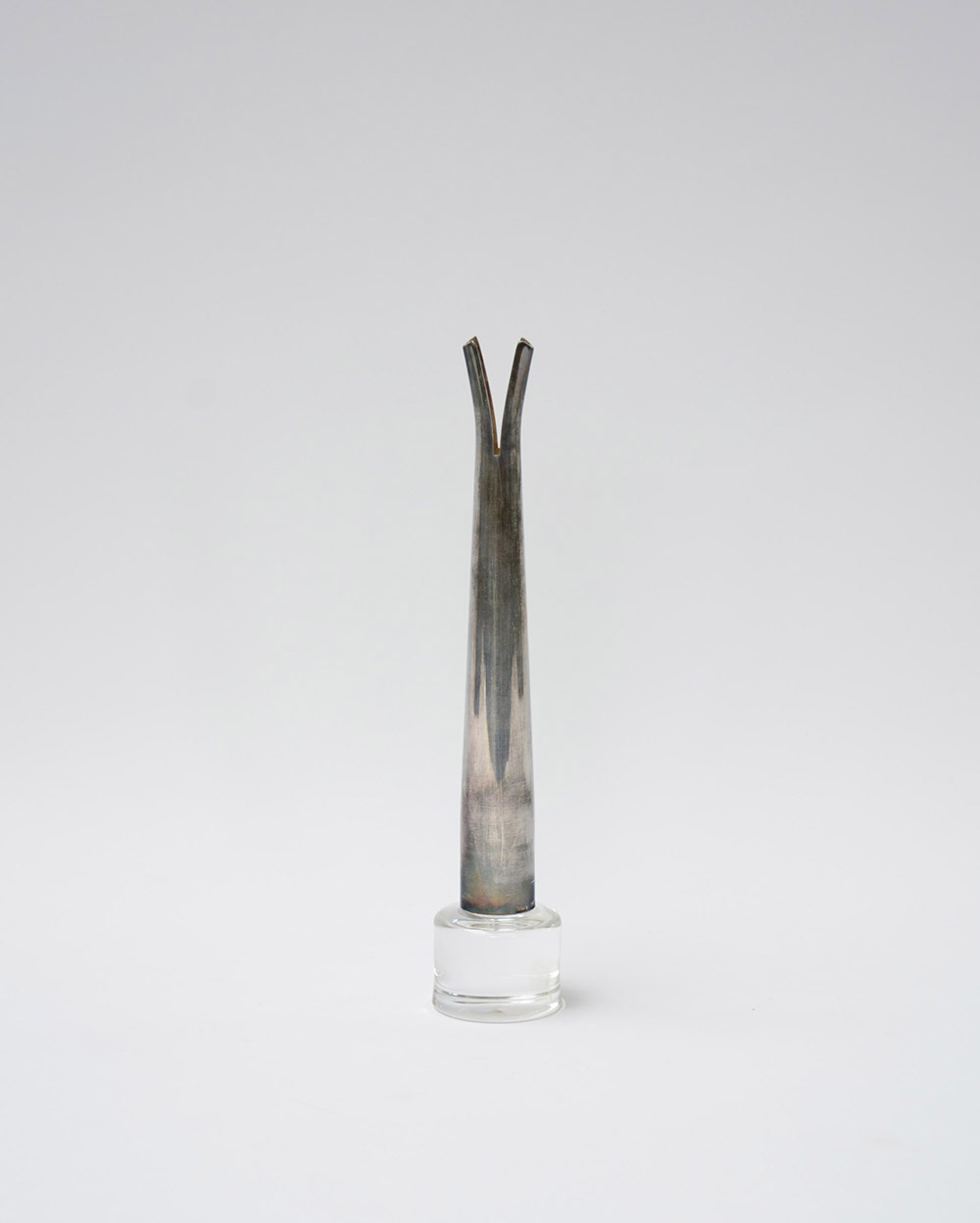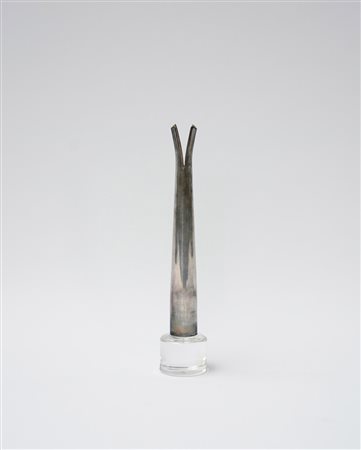 Lino Sabattini 1925 2016 Vaso portafiori in metallo con base in cristallo. In custodia (h cm 28)