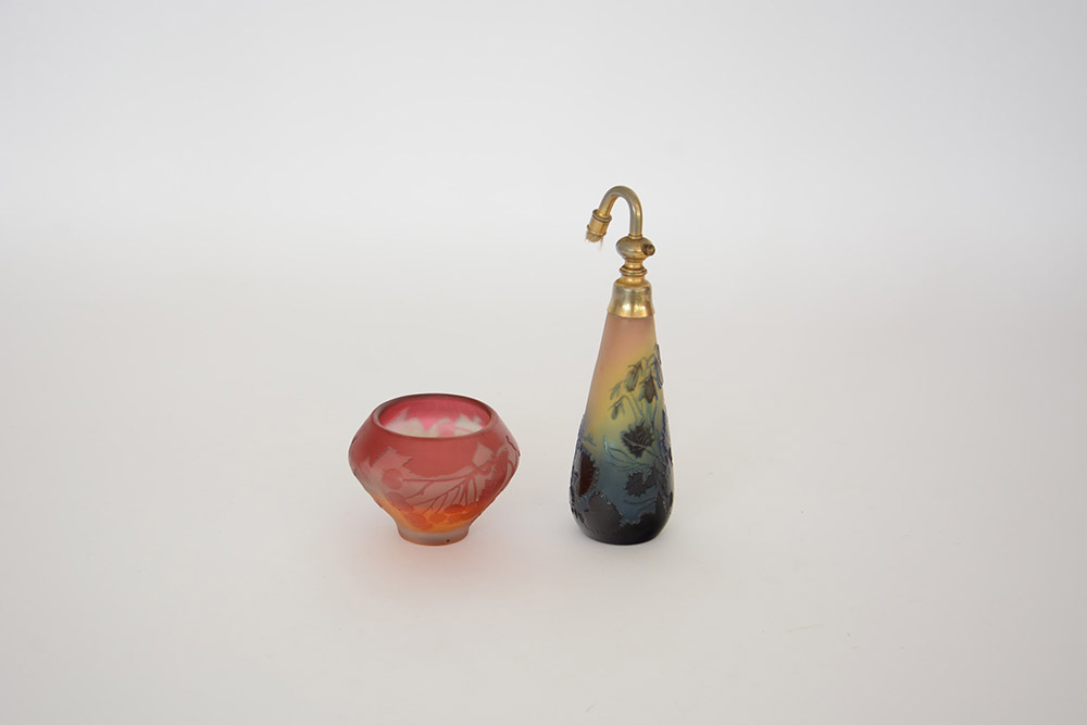Gallé, Nancy Lotto composto da un portaprofumi e da una ciotola in vetro...