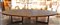 Grande tavolo da riunione circolare con piano impiallacciato in legno e otto...