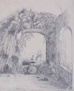 Scuola Inglese del XIX secolo DOMUS DEL PALATINO matita e biacca su carta, cm 23x17,5. Tracce di firma in basso a destra. Datato: 1842