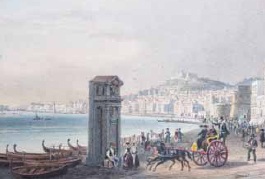Scuola Napoletana del XX secolo VEDUTA DI NAPOLI gouache su carta, cm 8x12.