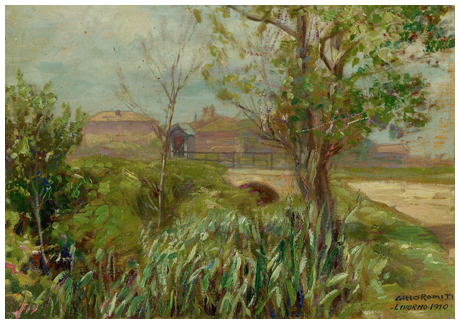 GINO ROMITI Livorno 1881 – Livorno 1967 Senza titolo 1910 Olio su tavola 15,2 x 21,7. Firma e data in b. a d. B.A.: ALLA MAGGIORE OFFERTA