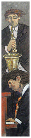 GIAMPAOLO TALANI San Vincenzo 1955 Jazz 2017 T.m. su cartone 20 x 70. Sul verso firma, titolo, data e tecnica + timbro galleria Oltremare, Castiglioncello. Autentica dell’autore su foto. B.A.: 490